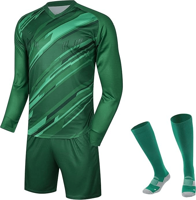 Defend your goal in style and comfort with the Custom Goalkeeper Kit for Men by Stridout International. Engineered for elite performance, this 2-piece set includes a long-sleeve padded jersey and shorts, crafted from high-quality, breathable polyester. Ideal for match days and training, this kit keeps you protected and cool under pressure.